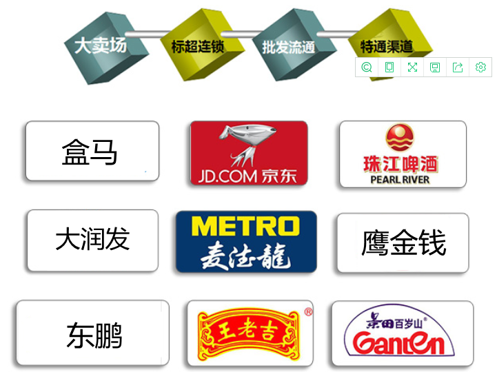 分銷代理招商:可自行完成產(chǎn)品從市場推廣、分銷代理、物流配送到市場服務(wù)的綜合經(jīng)營業(yè)務(wù),市場網(wǎng)絡(luò)遍布上海、江蘇、浙江、山東、安徽等華東地區(qū)。與江浙滬數(shù)百家二、三級分銷商合作,并通過這些分銷商,直接快速滲透可覆蓋的上萬家餐飲、加盟超市、夜店、名煙酒店、特渠等傳統(tǒng)渠道;另外與各類知名大型賣場、標超、便利店、高端超市等現(xiàn)代渠道和各類電子商務(wù)平臺,保持著良好的合作關(guān)系,擁有一支上百人、很強活躍的銷售團隊,成為華東知名的品牌運營商。